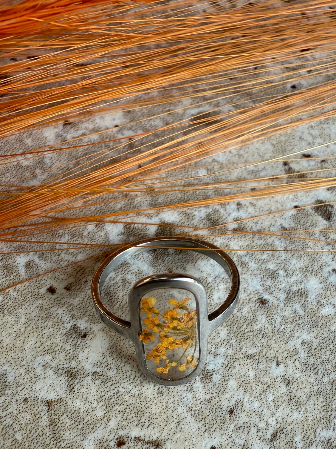 Ce bijou renferme une fleur de carotte sauvage, symbole de protection, de liberté et de beauté discrète.